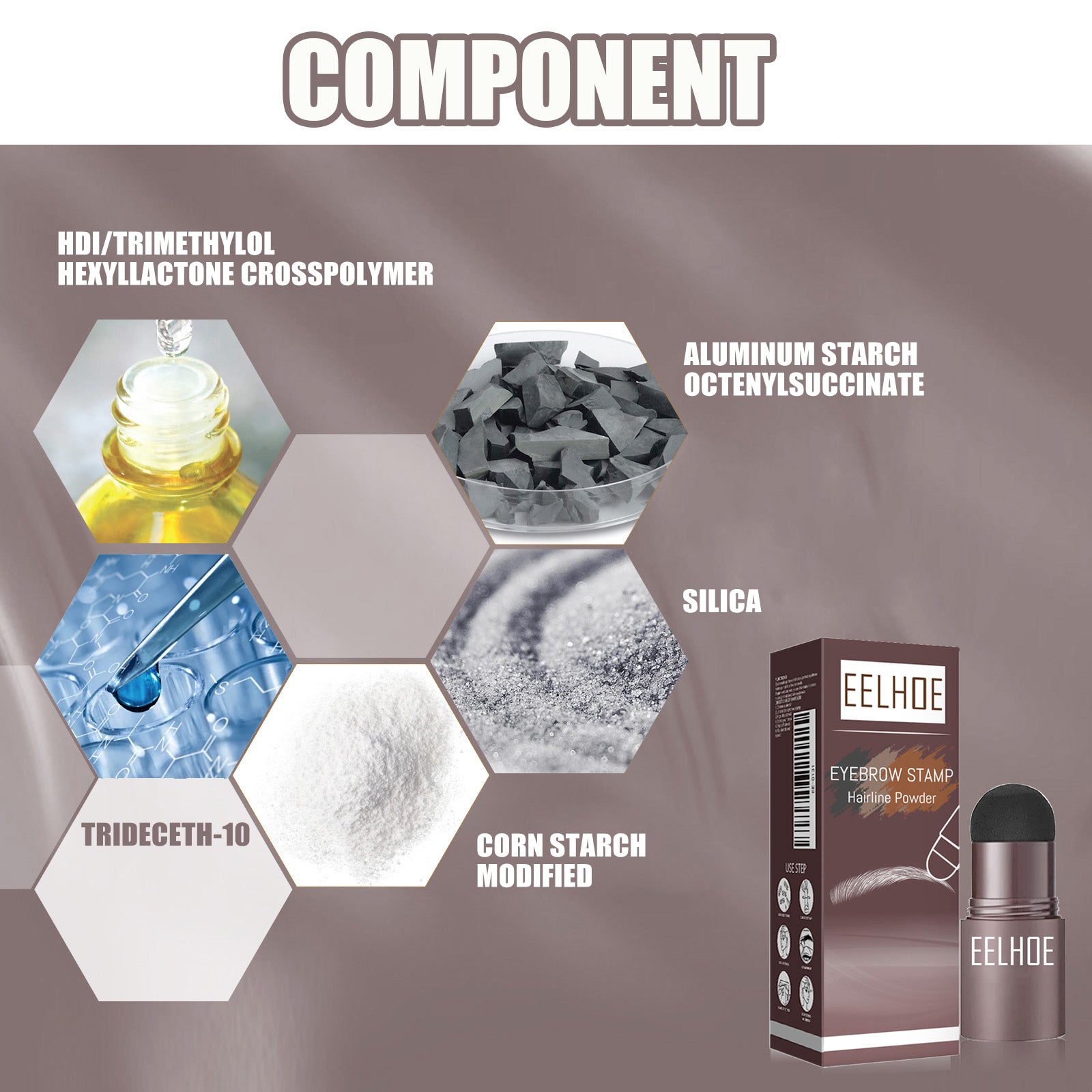 Our eyebrow print mold eyebrow drawing (dark grey box) is carefully formulated with modified corn starch and aluminum octenyl succinate starch. Designed specifically for all eyebrow shapes, it does not cause allergies or damage to the root of the eyebrows or the skin, and does not inhibit the growth of new hair strands. The usage method is extremely convenient: 1. Select the template; 2. Unfasten the eyebrow stamp; 3. Adjust the template; 4. Poke your forehead; 5. Wipe off the mold; 6. Flip the template and repeat. And it can enrich the eyebrow shape and enhance the appearance level.