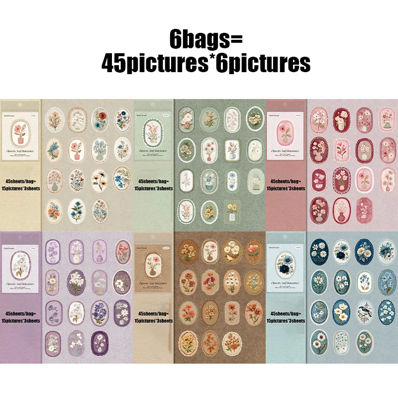 • 45 Unique Floral Stickers — perfect for journals, scrapbooks, and planners