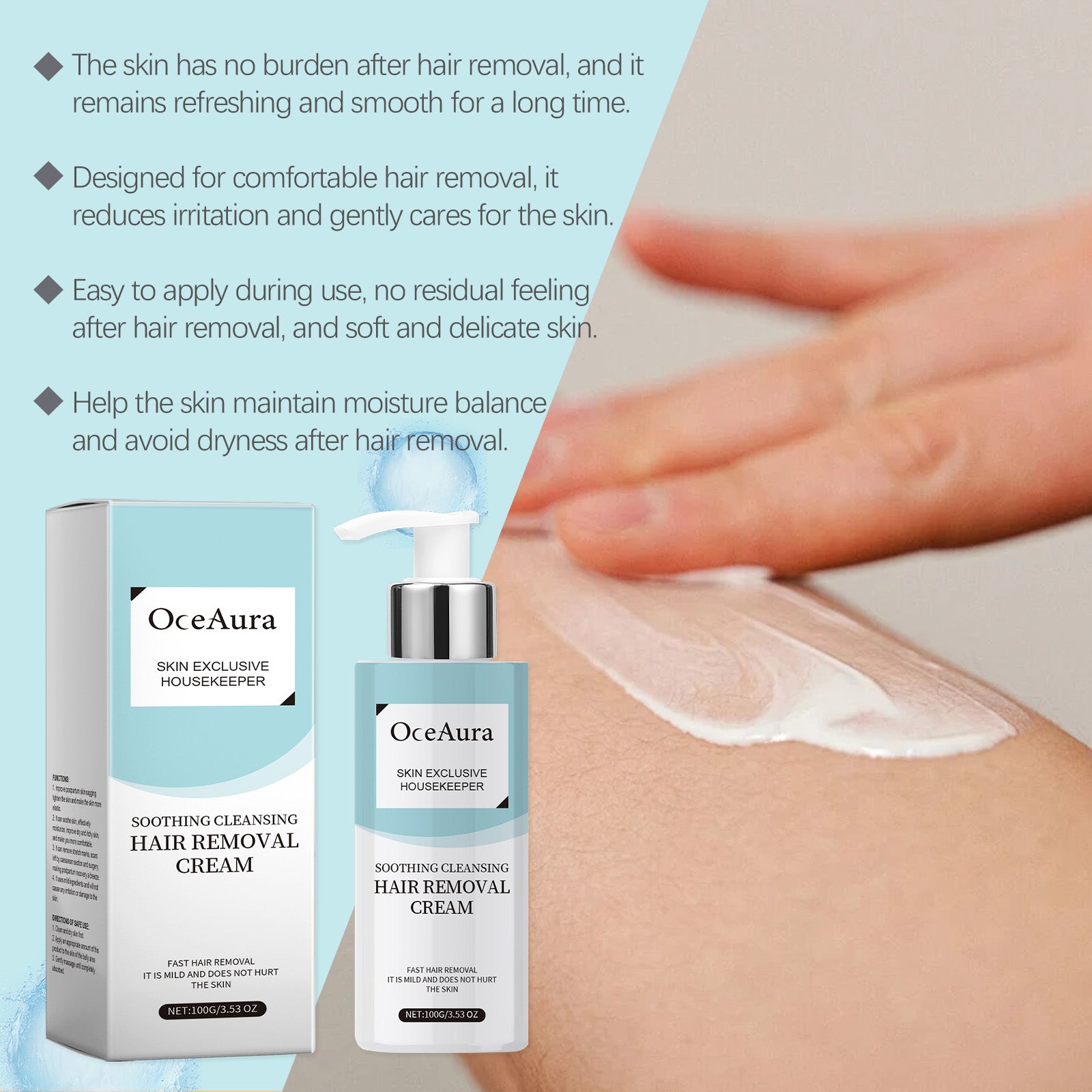 Our gentle hair removal cream contains glycerin, calcium thioglycolate and olive oil. After its use, the skin is smooth and fine, no irritation, suitable for daily hair removal care. Suitable for quick hair removal at any time. The way to use it is very simple: after the hair is dry, apply it evenly on the hair with water for 5-10 minutes. Gently scrape off the removal area and completely cover the gel and hair. And the gentle ingredients help soothe the skin and reduce discomfort during hair removal. With moisturizing ingredients, the skin remains soft and smooth after hair removal, and the comfort is enhanced.